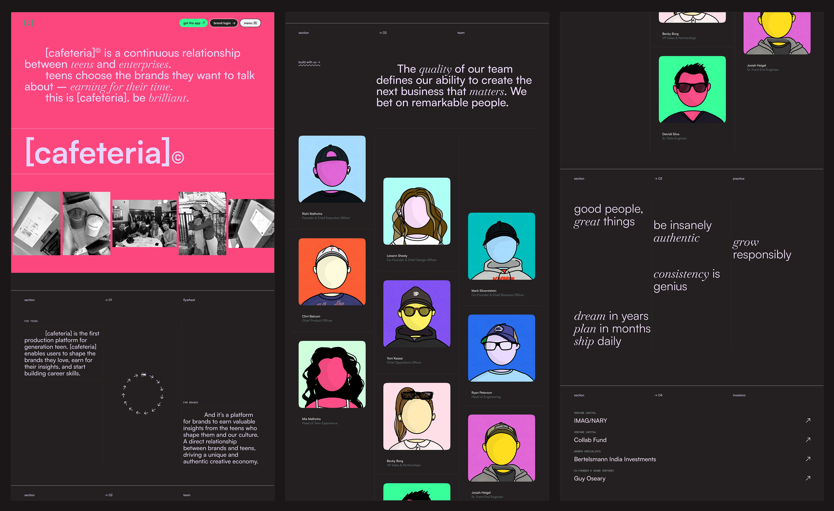 [cafeteria] is the first production platform for generation teen. It enables users to shape the brands they love, earn for their insights, and start building career skills.