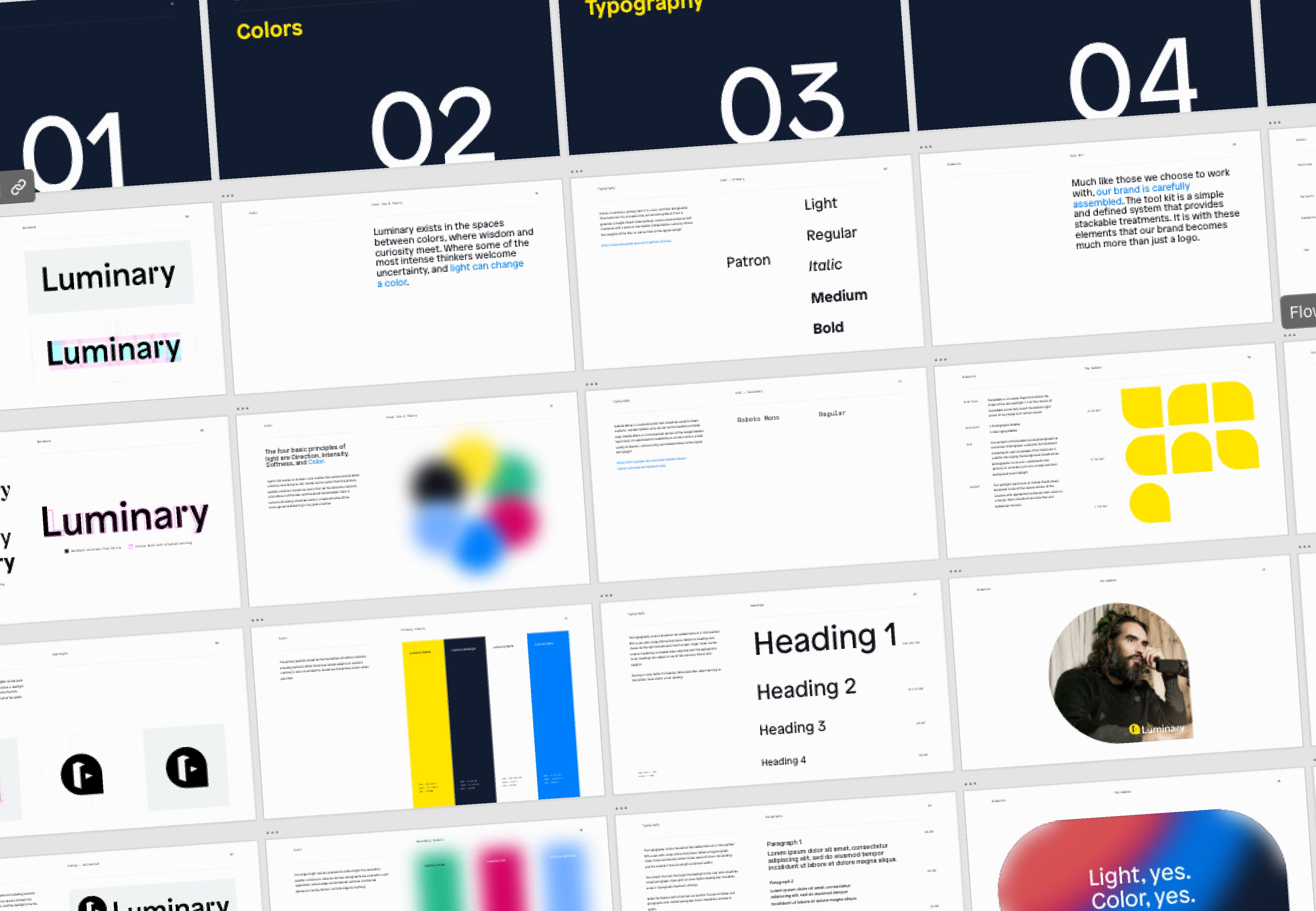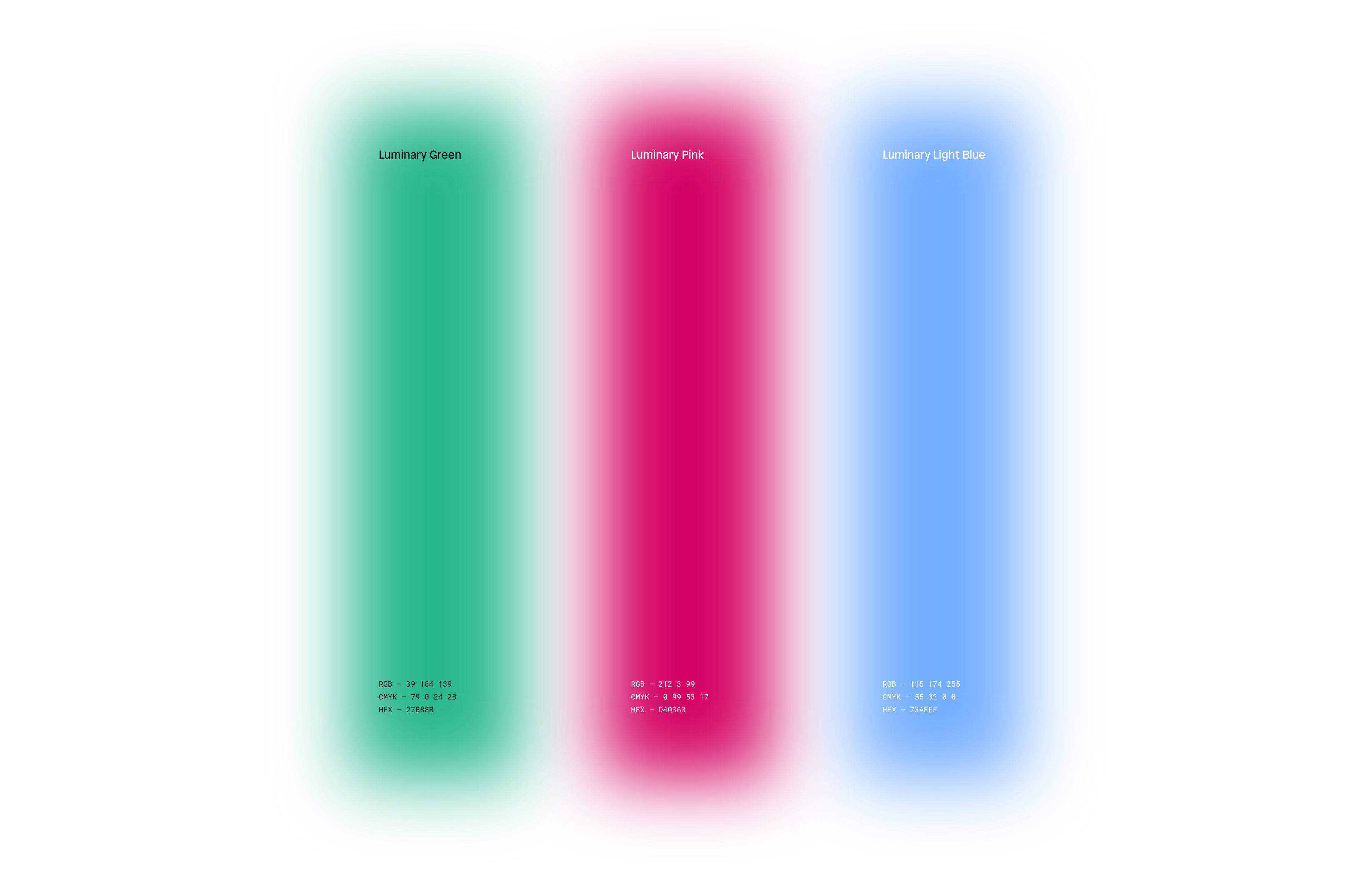 The two main elements of the design system revolve around the two definitions of Luminary. A light – this is our talent, and a blur, which is the other side of the light. That’s us – Luminary.